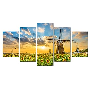 Sunflower Canvas Painting Windmill Wall Art Landscape Modern Rustic Sunset Wall Pictures For Living Room Decoration Kitchen Home Decor Nature
